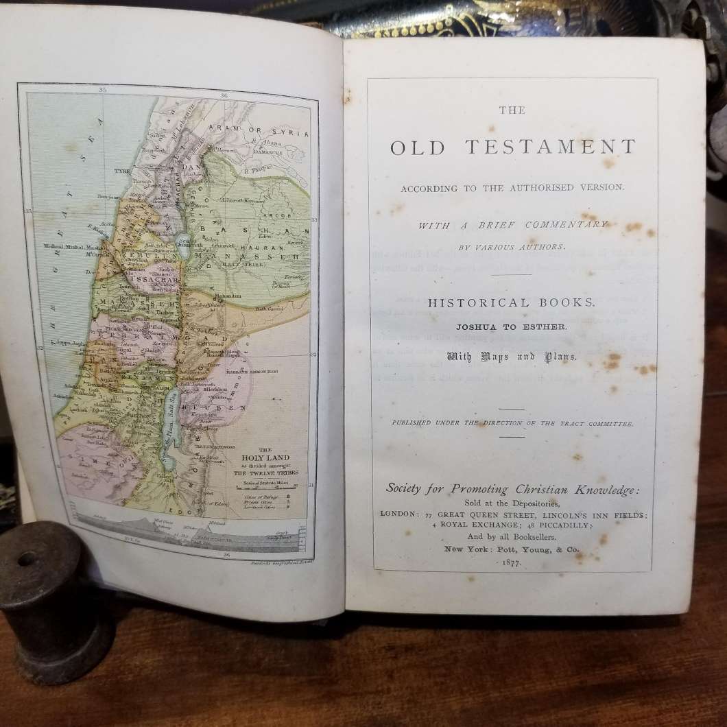 旧約聖書 公認版によるとさまざまな著者による簡単な解説付き歴史書 地図と計画付き アンティークブック 古書 洋書 インテリア 撮影展示